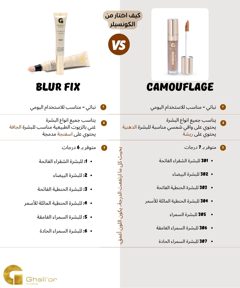 الكونسيلر من أهم أدوات المكياج اللي تعطي لمسة نهائية مثالية. دوره ما يقتصر فقط على إخفاء الهالات السوداء، بل يساعد أيضًا في توحيد لون البشرة، وإخفاء العيوب، وإضاءة مناطق معينة من الوجه. لكن كثير بنات يحتارون في اختيار الدرجة المناسبة لهم، سواء لاستخدامه تحت العين أو لتغطية الحبوب والعيوب. في هذا الدليل من غاليور باريس، راح نشرح لك كيف تختارين الدرجة الصحيحة للكونسيلر مع استعراض منتجاتنا ودرجاتها بالتفصيل.